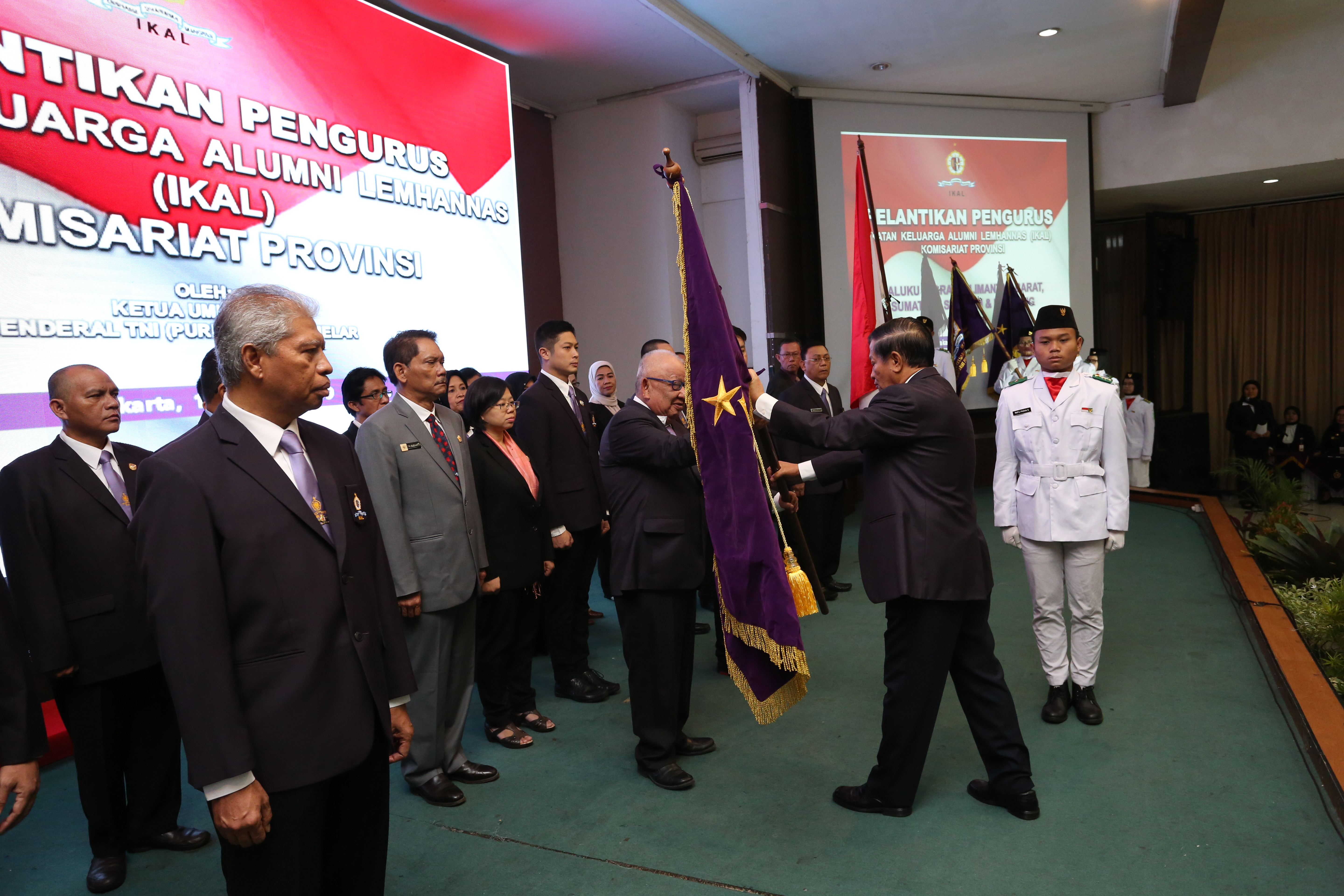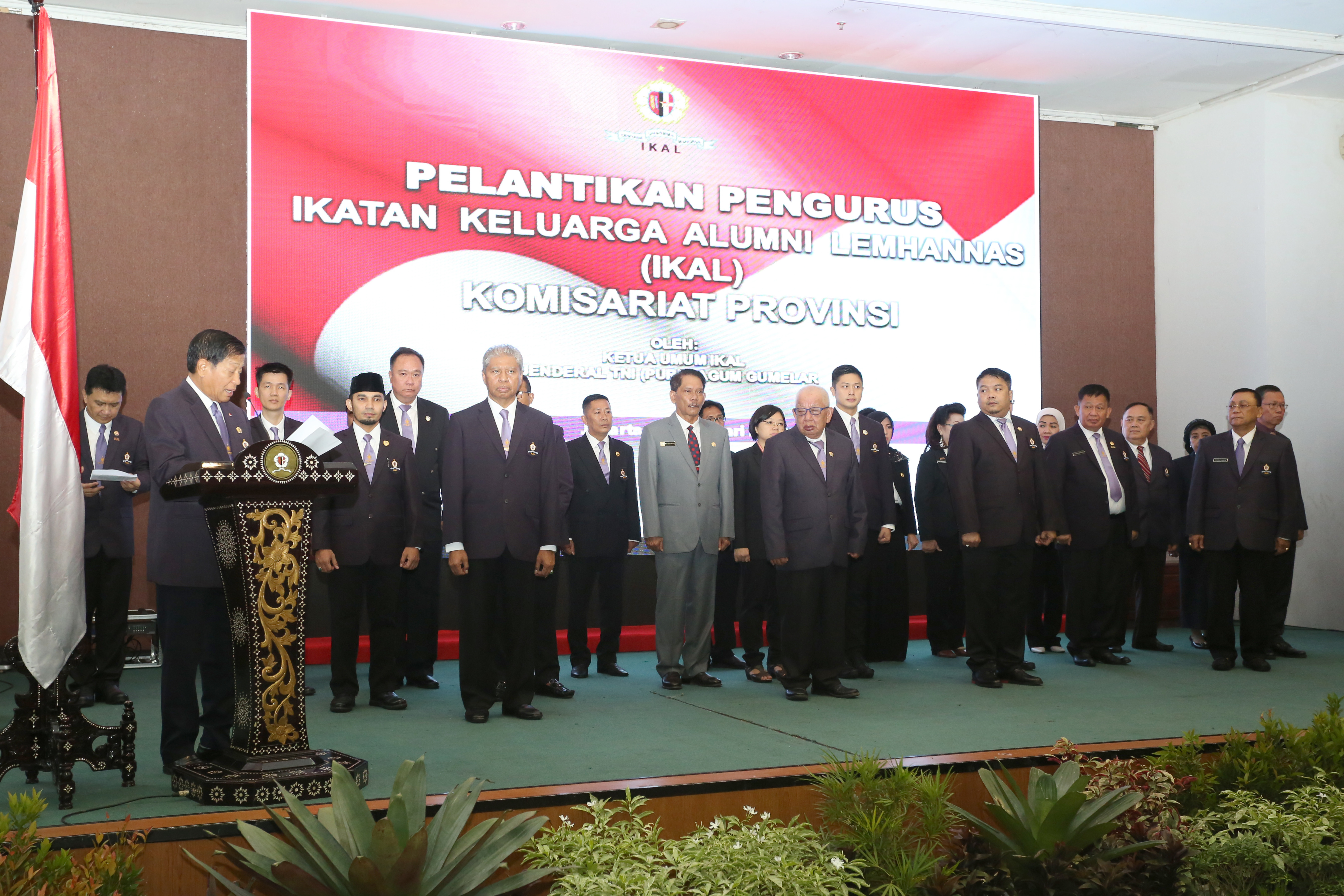 <p>Jakarta, Ketua Umum Ikatan Alumni Lemhannas (IKAL) Jendral (Purn) Agum Gumelar melantik Ketua dan anggota pengurus IKAL komisariat 4 provinsi masa bakti 2019 – 2024 di Gedung Dwiwarna Lembaga Ketahanan Nasional, Jl. Medan Merdeka, Gambir, Jakarta Pusat, Rabu (16/1/2019).<br>Ketua Umum Ikatan Alumni Lemhannas (IKAL) Jendral (Purn) Agum Gumelar melantik Ketua dan anggota pengurus IKAL komisariat 4 provinsi masa bakti 2019 – 2024 di Gedung Dwiwarna Lembaga Ketahanan Nasional, Jl. Medan Merdeka, Gambir, Jakarta Pusat. Empat Ketua IKAL Komisariat daerah yang dilantik langsung oleh Jendral (Purn) Agum Gumelar adalah Dr. H. Burhan Abdurahman untuk Provinsi Maluku Utara, Nuril Hakim untuk Provinsi Lampung, Erry Gustion untuk Provinsi Sumatera Selatan, dan Prof. H. Alamsyah untuk Provinsi Kalimantan Barat.<br>Hadir di acara pelantikan Ketua dan anggota pengurus IKAL komisariat empat provinsi masa bakti 2019 – 2024, Wakil Gubernur LemhannasMarsdya TNI Wieko Syofyan, Sekretaris Utama Lemhannas Komjen Pol. Muh. Iriawan, Wakil Ketua Umum IKAL Komjen Pol. Purn Togar Sianipar, Wakil Ketua Umum IKAL Mustafa Abubakar, Wakil Sekretaris Jenderal IKAL Dr. Nieta Hidayani, Pengurus Pusat IKAL Jakarta,dan Ketua IKAL Komisariat dari berbagai provinsi di Indonesia.</p>