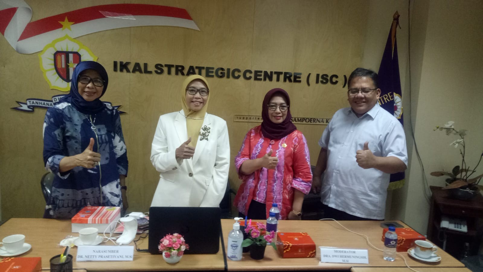 <p>Masalah stunting adalah salah satu isu penting dalam dunia kesehatan anak-anak yang masih menjadi perhatian besar, bilamana ini tak segera dituntaskan penangannya bisa mempengaruhi eksistensi generasi masa depan bangsa. Masalah penting ini dibahas dalam forum publik yang diselenggarakan IKAL STRATEGIC CENTER (ISC) dengan mengusung tema "Apa sulitnya Menghilangkan Stunting?". Tampil sebagai pembicara dalam diskusi ini antara lain Dr. Sri Puguh Budi Utami B.c.I.P., M.s.I, Lenny N. Rosalin , SE.M.Sx, dan Dr. Netty Prasetiyani, M.S.i, bertidak selaku moderator adalah Dra. Dwi Herningsih. M.S.i. ketika berita ini diturunkan, diskusi masih berlangsung. (Humas ISC)</p>