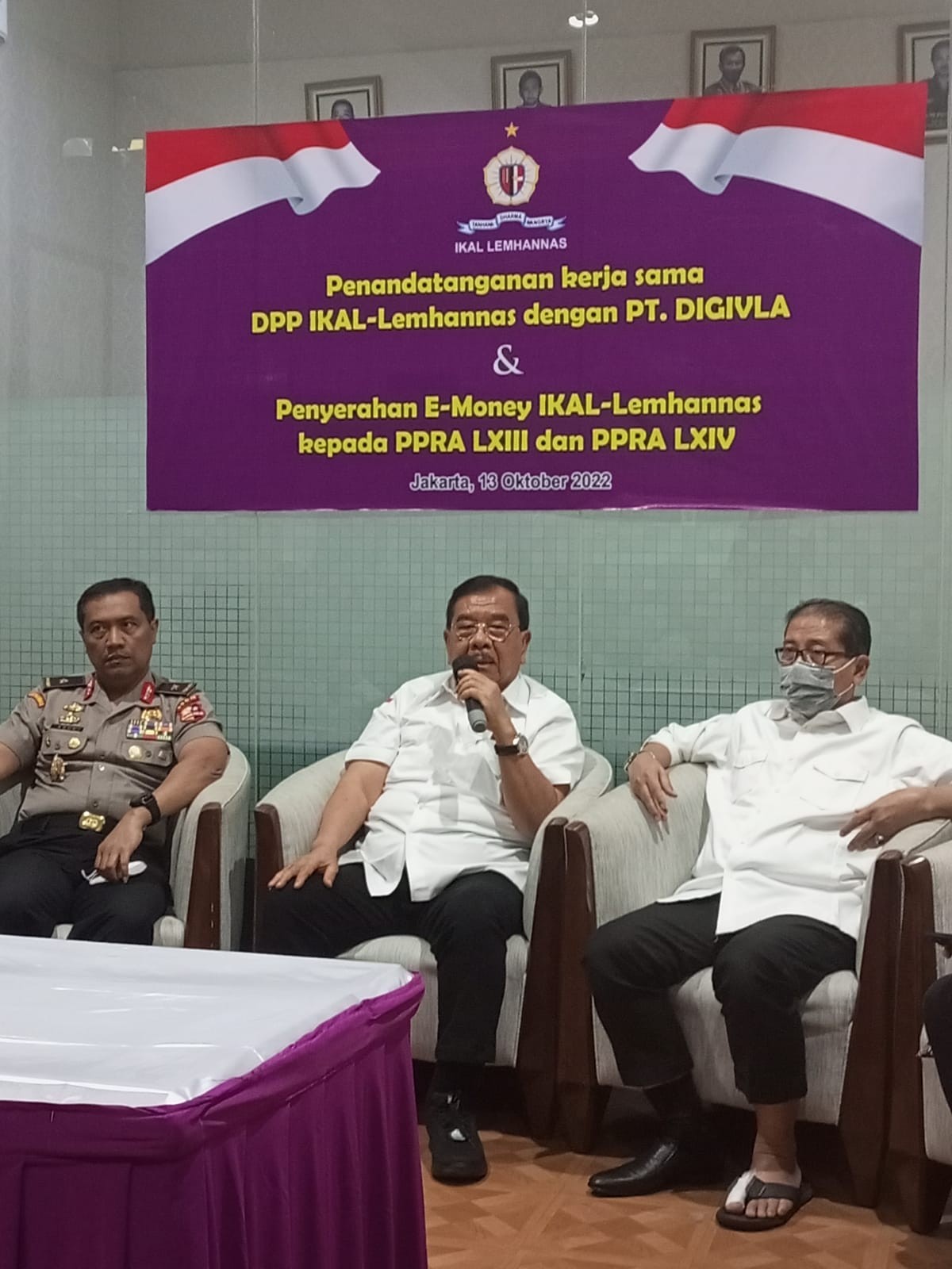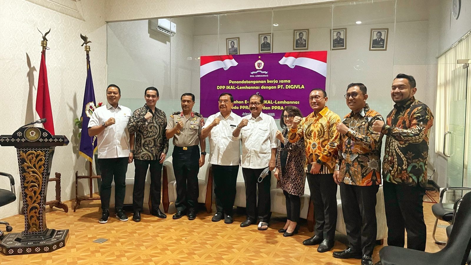 <p>Gubernur Lemhannas menyatakan era teknologi harus dimaknai secara tepat dan Lemhannas terus melakukan transformasi teknologi. Diwakili Brigjenpol Agus Sardono - Kabiro umum, dikatakan transformasi harus dilakukan bersinergi dengan banyak pihak. Sementara itu Waketum II DPP IKAL Lemhannas Komjenpol ( P ) Togar Sianipar mengatakan kegiatan alumni IKAL, tidak terbatas hanya dalam konteks akademik saja, tetapi juga terkait dengan usaha mendapatkan profit legal untuk kepentingan organisasi melalui PT DHN. Semua terangkum dalam acara penandatanganan kerjasama DPP IKAL Lemhannas dengan PT Digivla dibidang IT dan konsultan teknologi digital di set IKAL Lemhannas ( 13/10 ). Ikut menyampaikan paparan Dirut PT Digivla Reza Maulana dan acara diakhiri dengan diskusi dan foto bersama. Hadir Sekjen IKAL-Lemhannas Marsdya TNI ( Purn ) Daryatmo, Dirut PT. DHN Kartika Antono dan perwakilan PPRA 63 dan PPRA 64 yang menerima e-money.</p>